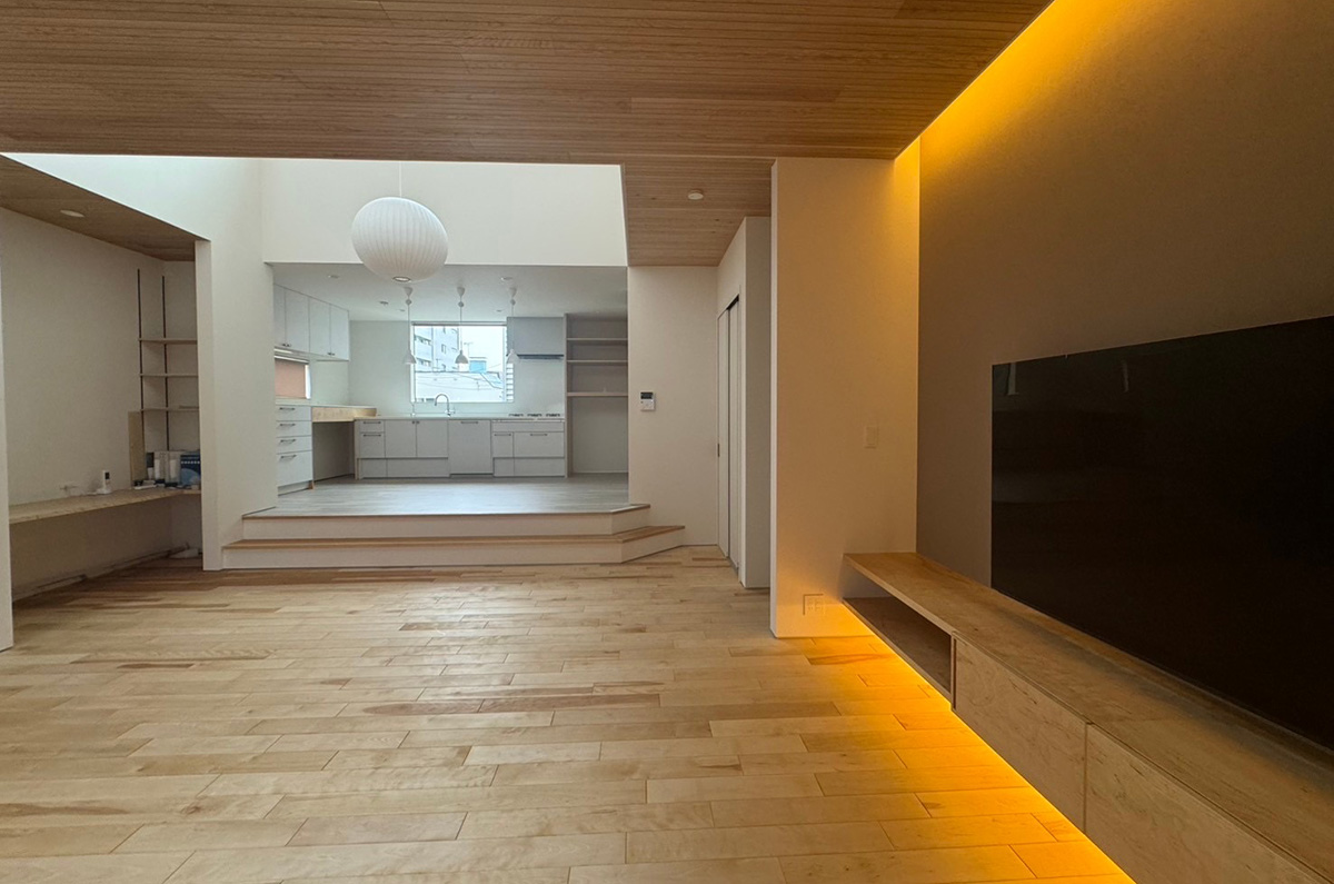 【新築】都心部の住宅密集地で光溢れるリビングを